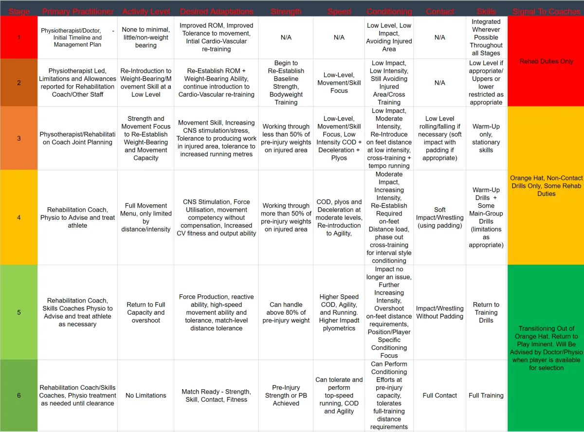 Whether you're starting in pre-season to improve your fitness, in-season to make sure you don't drop off mid year, or you're in for rehab guidance to manage injuries (short or long term) you can stay for as long as it makes sense for you to be involved.